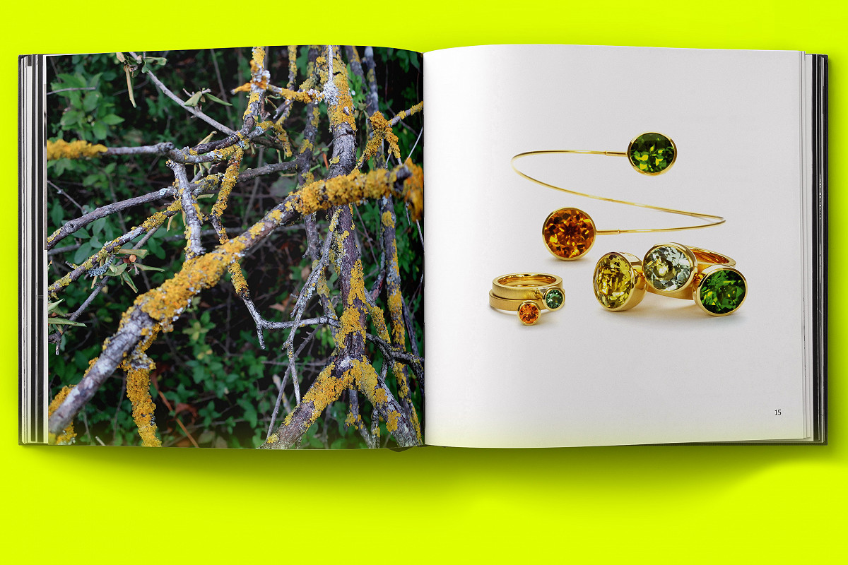 Auf die Auswahl seiner Steine verwendet er viel Sorgfalt. Die schönsten Edelsteine findet er bei Händlern auf der ganzen Welt, nutzt seine Kontakte um an bestes Material zu kommen. Um einem funkelnden Edelstein die Hauptrolle zu überlassen, verzichtet er auf jegliche Art von Schnörkel. Seine Formen sind schlicht und in ihrer Größe wahre Statements. Auserlesene Edelsteine in halbkugelige Fassungen perfekt zu fassen ist zu seinem Markenzeichen geworden das alle Zeiten überdauern wird. Großes zu schaffen das auch nach 100 Jahren noch die Erwartungen erfüllt — Dieser Anspruch motiviert ihn zu immer neuen Formen und Farbexperimenten.